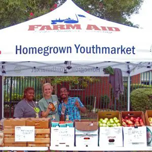 HOMEGROWN was launched in 2007 to connect eaters with farmers who are leading the way in production practices that care for the soil and water. HOMEGROWN Concessions® criteria require that ingredients are sourced from family farmers utilizing ecological practices and who are paid a fair price, all served on compostable service ware. These practices have made Farm Aid a leader in music event sustainability and attracted many regenerative, natural and organic food companies as part of a network of farmer supply. The HOMEGROWN Youthmarket adds the fresh food component of a farm stand staffed by young people. HOMEGROWN Village invites hands-on participation with seeds, soil, water, energy, skill-sharing and farmers to engage festival goers in the cultures of agriculture.