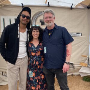 KURN: Between the dust and the heat, which kind of feels like a hot hair dryer blowing on you all day, we caught up with many artists, some who have played at Farm Aid and others who haven’t. One of the memorable interviews we’ve had was with Steve Earle, who has played a few Farm Aid concerts over the years. With recording gear in hand, we trekked through crowds and around the grounds of the festival to find Steve holed up in a vintage camping trailer with much needed air conditioning. He welcomed us in, and we crammed around a small round table to chat about music and politics and why he got into this realm as an artist.