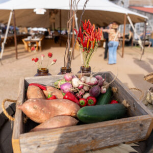 As always, on the eve of the Reunion, the Potluck kicked off the magic with a dinner party for a couple hundred lucky guests who enjoyed food and fellowship at long communal tables before an intimate set by Willie Nelson & Family with special guest Daniel Lanois under the Texas stars. Proceeds from the Potluck and Farm Aid’s silent auction generously support Farm Aid and the Texas Food and Wine Alliance through the Luck Family Foundation. This year marked the tenth anniversary of the Potluck, and a crew of renowned chefs pulled out all the stops to transform local family farm food into a slew of delicious dishes inspired by their own backgrounds, experiences and cooking philosophies. The 2025 Potluck theme of “East meets West” brought the influence of diverse Asian cultures to classic Texas cuisine and invited guests to “experience a culinary journey that not only delights the palate but also honors the powerful story of immigration and cultural integration,” on Texas foodways and food systems across the United States.