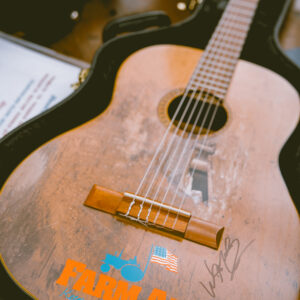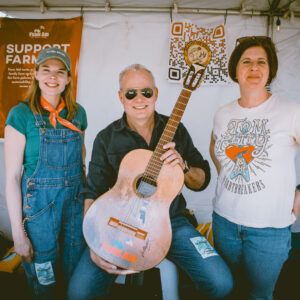 The Reunion flew by in whir of diverse music punctured by tempting wafts of everything from curry to Texas BBQ to tacos. We spent the afternoon in conversation with dozens of attendees who stopped by the Farm Aid table to learn more about our work and support Farm Aid through their bids on Tribute to Trigger, an Epiphone E-1 Classical acoustic guitar donated by our friends at Gibson Gives and customized by our pals at The Graphic Guitar Guys. We connected with folks from across the country–and beyond–and heard stories from many who have attended, donated to or volunteered at Farm Aid festivals past, who have a family history in agriculture or who are now farming themselves. It’s so spirit-lifting to get out there and spread the word about Farm Aid’s mission, and to have friends old and new express whole-hearted support for family farmers.