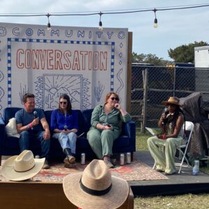 Farm Aid staff had another role to play at the Reunion, hosting two panel discussions on Luck’s Community Conversations stage with artists, farmers and activists. Our Co-Executive Director and Program Director Shorlette Ammons moderated a conversation, titled “Building Local Farm and Foodways.” We thought it would be cool to introduce folks at the Reunion to farm and food work happening in their backyard. For this reason, we invited Lockhart Texas farmer Jamey Gage, owner of B5 Farm Amy Gallo, with Sustainable Food Center in Austin; and Hallie Casey, Partnerships Director with The Common Market Houston. The conversation was, ironically, about sustainability and the current food systems landscape in the Austin region of Texas. I say, “ironically” because during the panel discussion, both Hallie and Amy mentioned cuts in some of their programs would impact the longevity of some needful services to folks in the Austin area, like Double Up Food Bucks SNAP benefits. Jamey, who was there with his wife and young daughter, connected the dots to his relationship with Hallie and Amy via the farmers market and also through some trainings offered by The Common Market. Each panelist ended with a call to action. Both Hallie and Amy encouraged folks to support and advocate for these local programs so that they continue to get the funding they need to provide these game-changing services. Jamey’s call to action… “grow something. Get your hands in the dirt.” Based on the nods from the audience, I anticipate there will be a few more gardens planted in Texas this spring!
