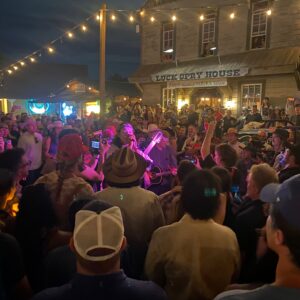 If you’re trying to imagine what Willie’s ranch looks like, I invite you to pause here and check out the iconic film Red Headed Stranger. Forty years ago (yes, the same year as the first Farm Aid festival…Willie was busy in 1985!) production began on a makeshift set of a western town nicknamed “Willieville” built on the ranch outside of Austin. Once the film wrapped, the set remained and the town has been restored, fortified and reimagined as Luck, Texas. Willie’s rescued horses welcome you as you wind along the long dirt road that leads to Luck’s town center, home to a seed bank, saloon, jailhouse, general store, chapel, opry house–just about everything an old western town needs. Most days Luck sits empty; but, on a few special occasions each year, it fills with folks eager for an epic experience that can only happen in Willie’s backyard.
