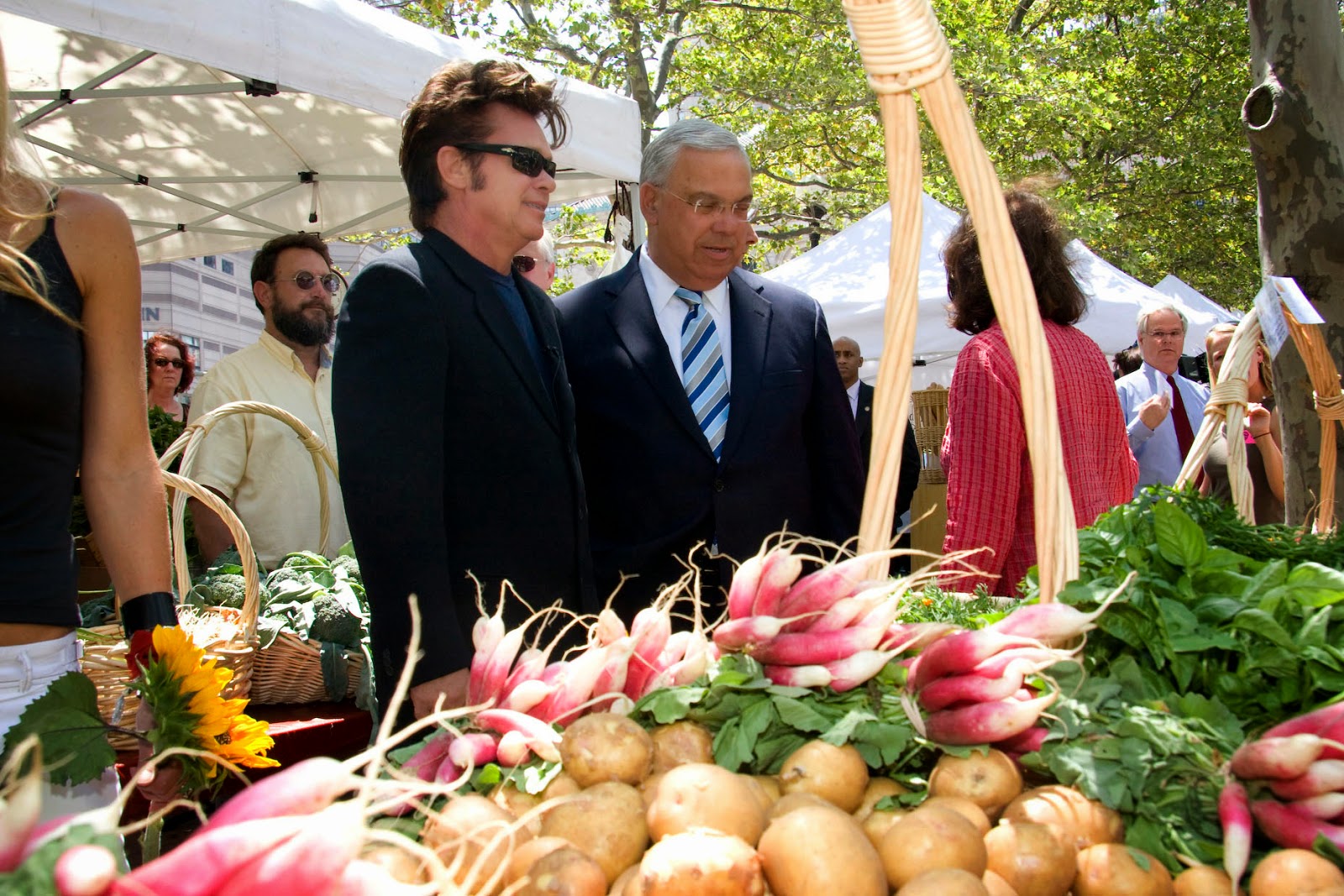 John Mellencamp and Mayor Menino at a press conference in Copley Square, Boston, to announce Farm Aid 2008.