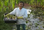 A: It is a labor intensive backbending labor of love. We prepare our fields with a tractor or a rototiller, flood the fields, then till again. Then you plant each vegetative propagule in lines. It takes 12-14 months on the average for our taro variety to mature. During this time we may have to go in from 2-4 times to pull weeds and clean the banks as needed. There is no machine to harvest taro. All human labor.