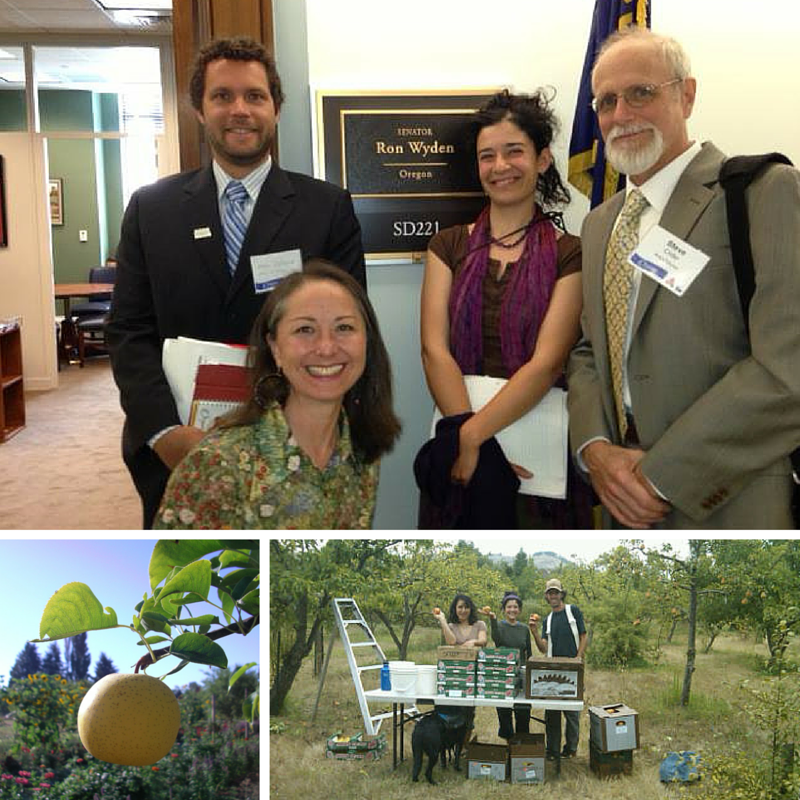 Top: Farmer, Rachel Weiner, in Washington D.C. with other organic supporters getting ready to meet with Senator Wyden, D-OR. Bottom row: Photos from Rachel’s farm. Photos: OFRF, Rachel Weiner.