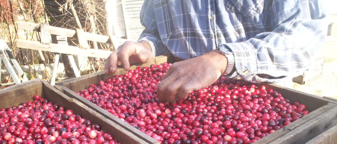 Contrary to popular belief, cranberries grow on vines, not in water, but cranberries are a water intensive crop. Massachusetts is ideal for cranberry growing because of the abundance of water and its sandy soil. However, it can be hard to keep land in agricultural production because Massachusetts has a very high land value so cranberry growers are often at risk of being overrun by development.