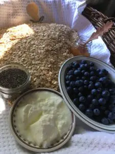 Combine rolled oats with your favorite milk or juice, stir in chia seeds and vanilla.