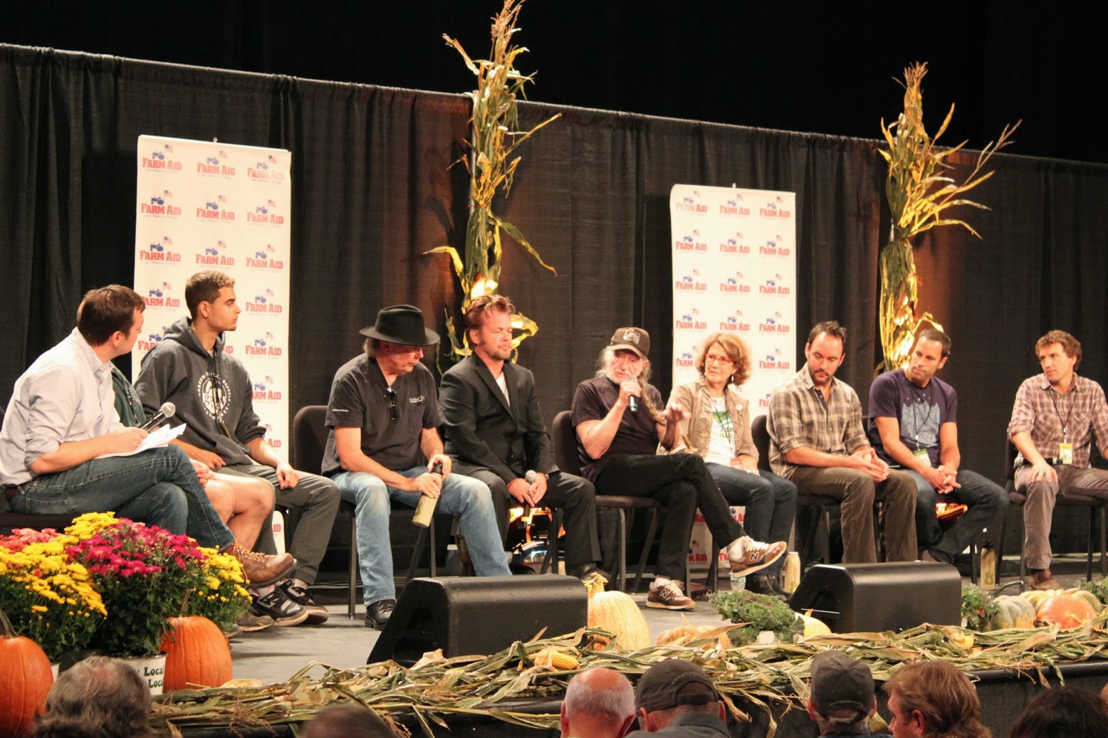 This morning I had the incredible opportunity of attending the Farm Aid 2013 press event here at Saratoga State Park’s Little Theater. Board artists Willie Nelson, Neil Young, John Mellencamp and Dave Matthews sat down to discuss the reasons why Farm Aid is still taking place after 28 years. They were joined on-stage by Farm Aid artist Jack Johnson, Carolyn Mugar, and farmers Ben and Lindsey Shute.
