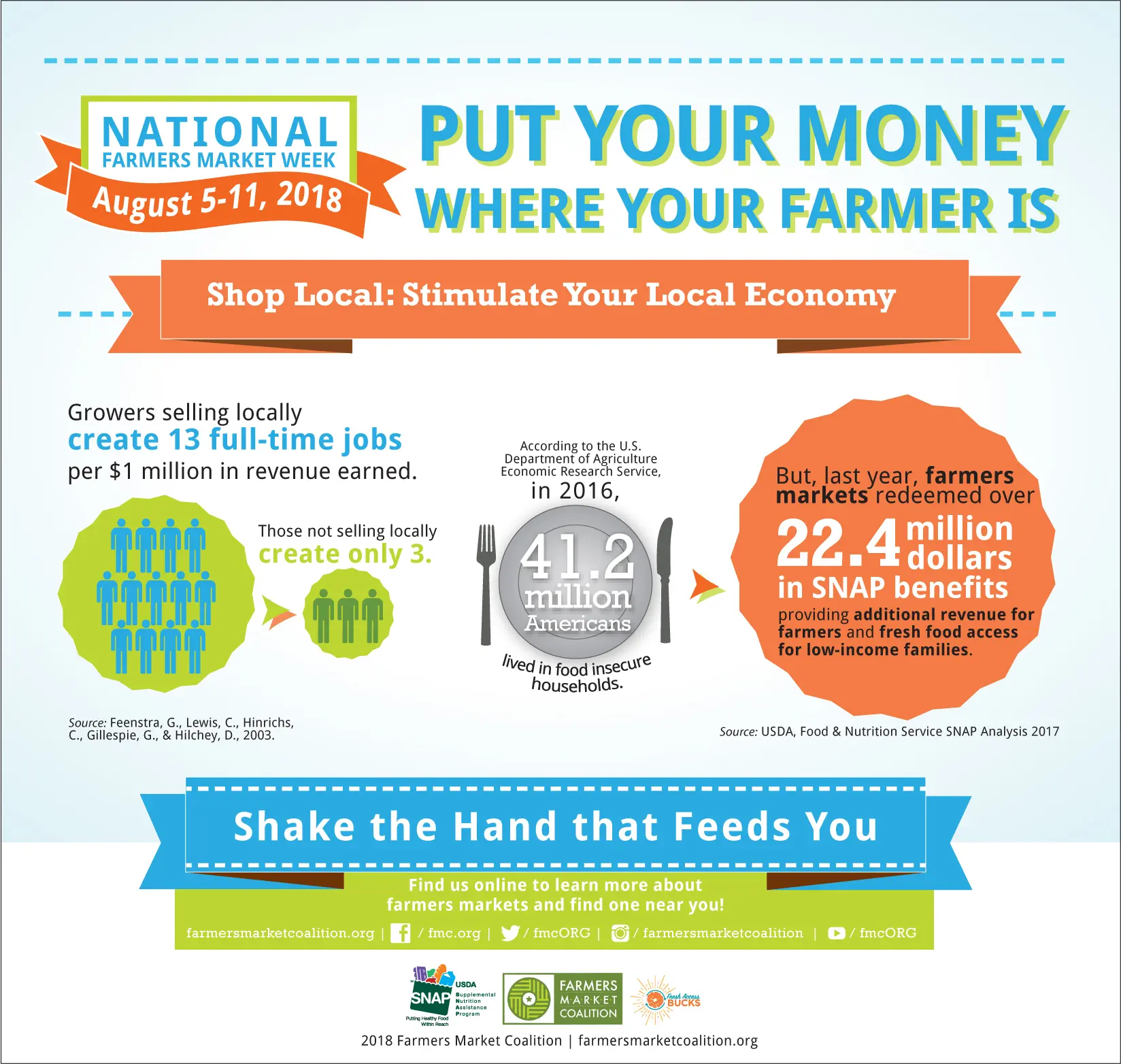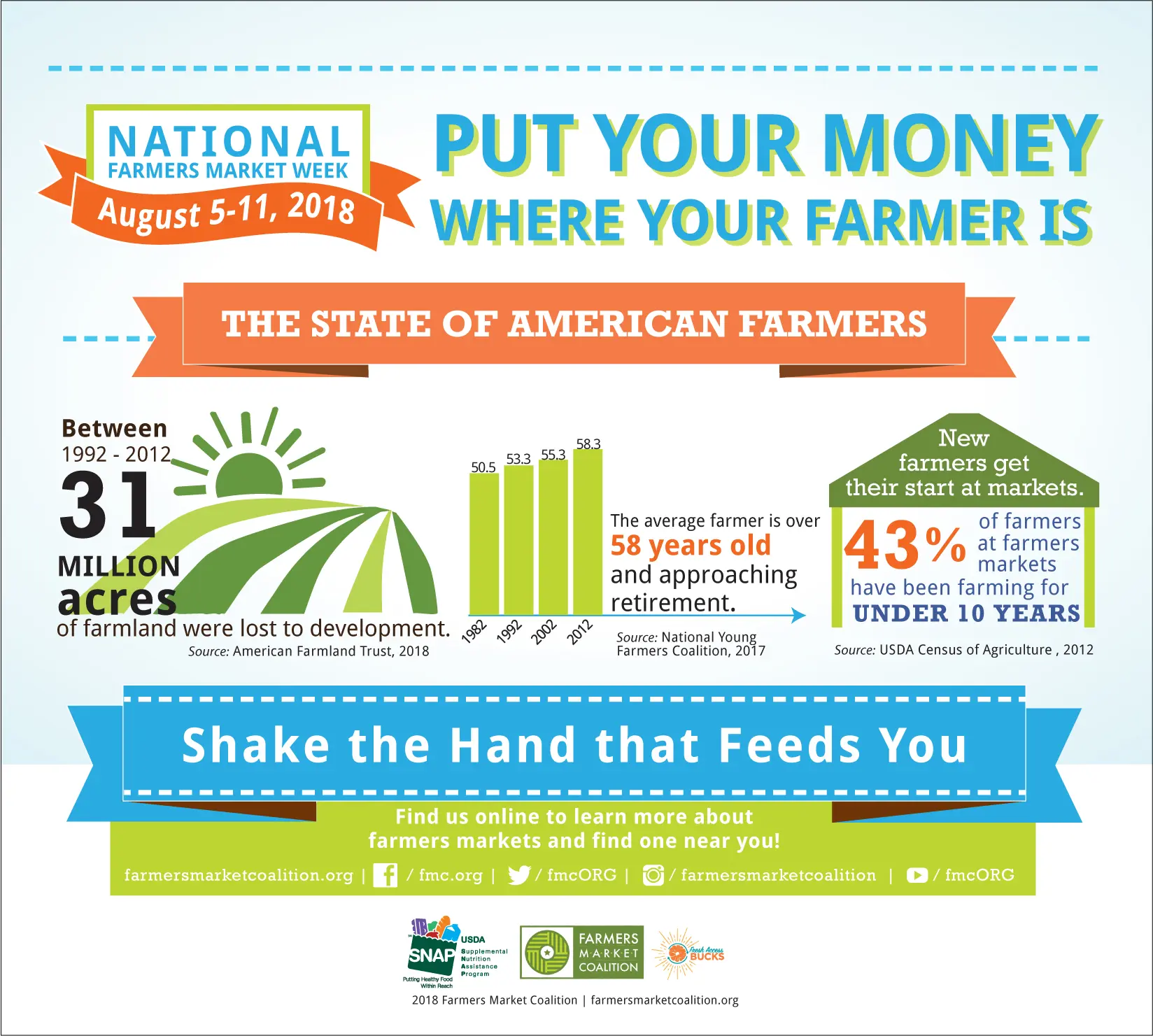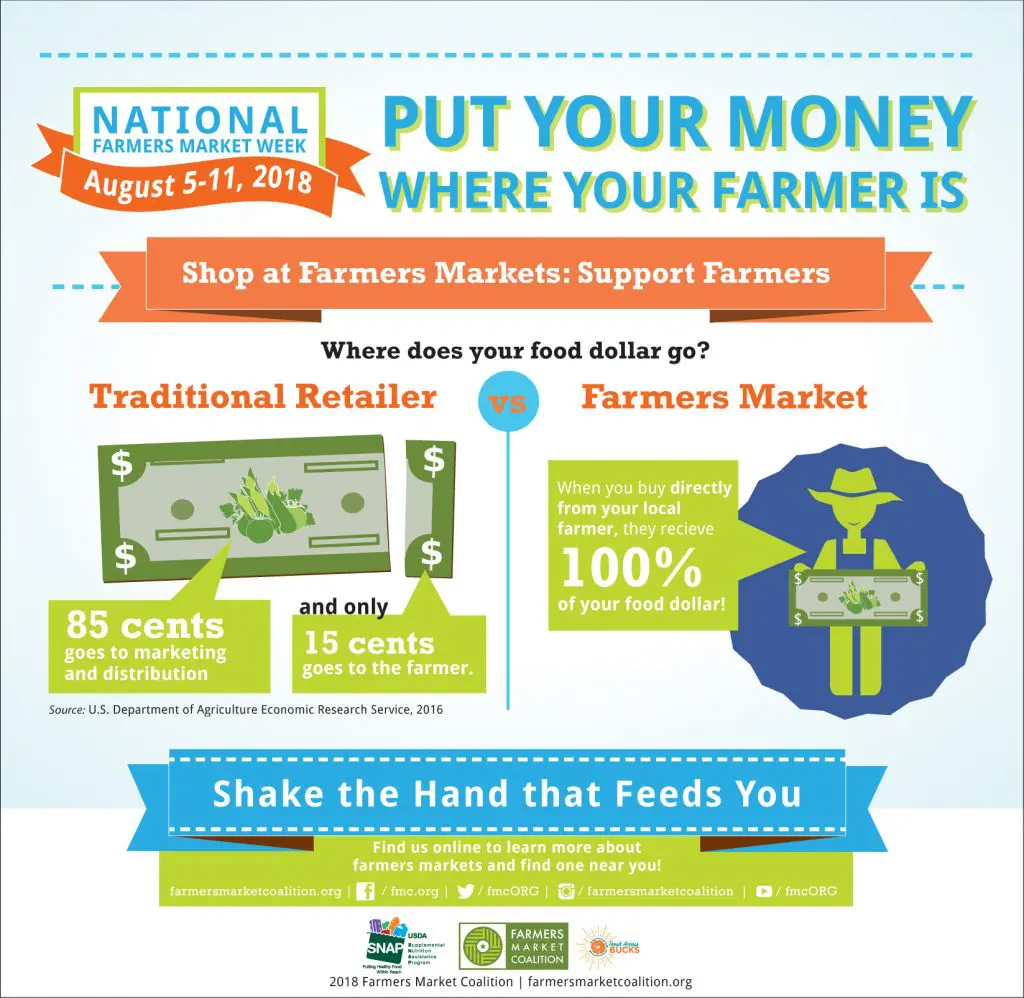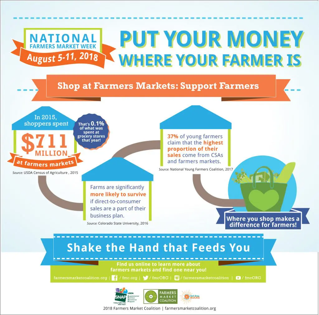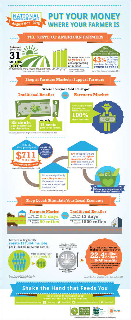 Show your farmers market love by sharing these bite-sized facts by the Farmers Market Coalition. Click on them to view and save the full-size graphics: