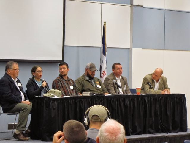 Mickey Clayton, holding the microphone, along with four other farmer veterans and (on far left) FVC executive director Michael O’Gorman during a conference session titled, “Adapt and Overcome: Military Lessons for New Farmers.” On Mickey’s left is Wisconsin farmer-veteran Chris Hollman, who first connected with the Farmer Veteran Coalition in the HOMEGROWN Village at the Milwaukee Farm Aid concert in 2010.
