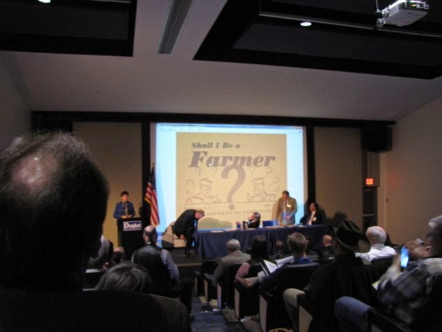 Conference keynote speaker USDA Deputy Secretary Krista Harden displays a WWII era government poster promoting farming as a viable profession for vets following the war. During her talk Harden introduced Karis Gutteer as the USDA’s first Military Veteran Agricultural Liaison, who will provide info, resources and support for active duty military and veterans interested in agriculture.
