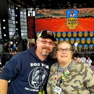 I grew up in a small farming community in western Massachusetts. I helped my parents with chores around our land to raise the meat and veggies that were on our kitchen table to feed us. My knowledge of the Farm Aid community began many years ago as my late husband, Rick attended the first Farm Aid Festival in IL in 1985 and had a favorite t-shirt that he promised me that I would always keep. At the 30th Anniversary show held in Chicago, I was lucky enough to attend with friends and got to know some of the Farm Aid staff. After that volunteering and discussing the Farm Aid organization became a passion.