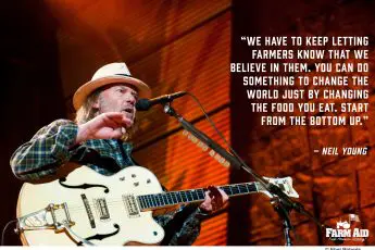 Bob Dylan struck a nerve when he said, “Wouldn’t it be great if we did something for our own farmers right here in America?” at Live Aid, the concert for Africa. Willie Nelson, Neil Young and John Mellencamp agreed that America needed to realize the importance of family farmers and fight to keep them on the land. And they did something about it, planning a concert for America Six weeks later the first Farm Aid concert was held on September 22, 1985 in Champaign, Illinois, before a crowd of nearly 80,000 people. Performers included Bob Dylan, Billy Joel, B.B. King, Loretta Lynn, Roy Orbison, Bonnie Raitt, Tom Petty and many more.