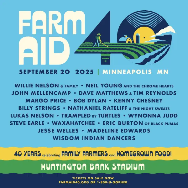 “For 40 years, Farm Aid and our partners have stood with farmers, supporting them to stay on their land even when corporate power, bad policies and broken promises make it harder to keep going. This year, we’re proud to bring Farm Aid to Minnesota to celebrate the farmers who sustain us and to fight for a food system that works for all of us. Family farmers aren’t backing down, and neither are we.”