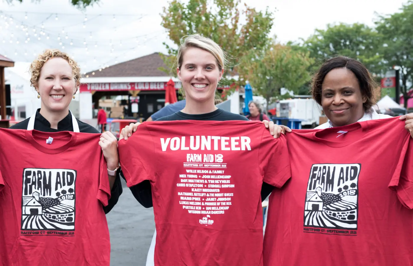 All Farm Aid volunteers are guaranteed access to the lawn or designated area to enjoy the show when they’re not working, an official Farm Aid volunteer t-shirt, one meal per shift and an invitation to attend the Press Event prior to the festival and a pre-festival Volunteer Social. Most importantly, volunteers get the unique and exciting Farm Aid festival experience!