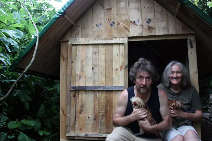 I’m Sue Cross and I live with my husband, Dr. Andy Colley, plus a selection of rare-breed bantams, quail, and fantail pigeons on an organic homestead in La Baie de Mont Saint Michel, Normandie, France. We both come from a long line of avid reusers, repurposers, and lovers of what now has become known as “shabby chic.” In this 101, I’m going to share the sourcing, design, and construction of our pallet wood chicken coop, or as we call it, our hen house.