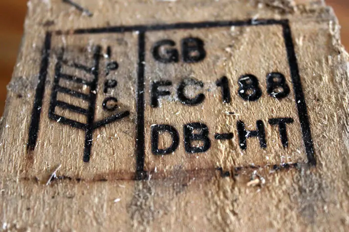 If you are new to the art of scavenging, we created a couple of articles: Collecting Pallets – A Few Guidelines and Collecting Pallets – How – Where – What. The what is directly linked to the where, and understanding what pallet codes mean is the key to finding an excellent source of free carpentry wood. Pictured above is a block from a British pallet, debarked and heat treated. To help you obtain the optimum amount of usable wood, we also have produced the film below.
