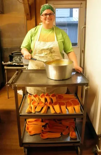 There are a few different options as far as what types of food-preservation methods you can use. We chose to cook and can applesauce in early November and called the event Yes We Can. In mid-January, we made a delicious squash soup and prepared it for freezing at an event called Squash Hunger. Dehydrating would also be an option, though we haven’t tried it yet. Because no one in our core group considered themselves a “master canner,” we reached out to a number of folks who had expertise and insight to share. We also did a lot of research and practiced some recipes and canning techniques at home and during Farm Nights.