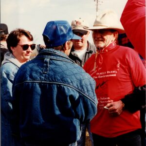 As Farm Aid’s 40th anniversary approaches this September, we want to take the opportunity to look back at some significant historical events in the history of the family farm movement. As it happens, this week marks the 30th anniversary of the first major protest against factory farms in Lincoln Township, Missouri. Organized by the Missouri Rural Crisis Center‘s Roger Allison, Rhonda Perry, and Terry Spence, the rally brought Farm Aid president Willie Nelson to a remote crossroads in the northern part of the state, the national media followed, and a movement for family farms and the environment was born.